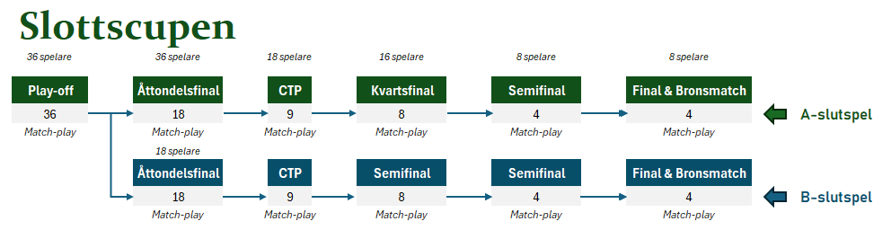 Cupen inleds med ett Playoff, som avgör om spelare går vidare till A- eller B-slutspel. Därefter följer ett klassiskt utslagsformat med Åttondelsfinal, Kvartsfinal, Semifinal och Final.